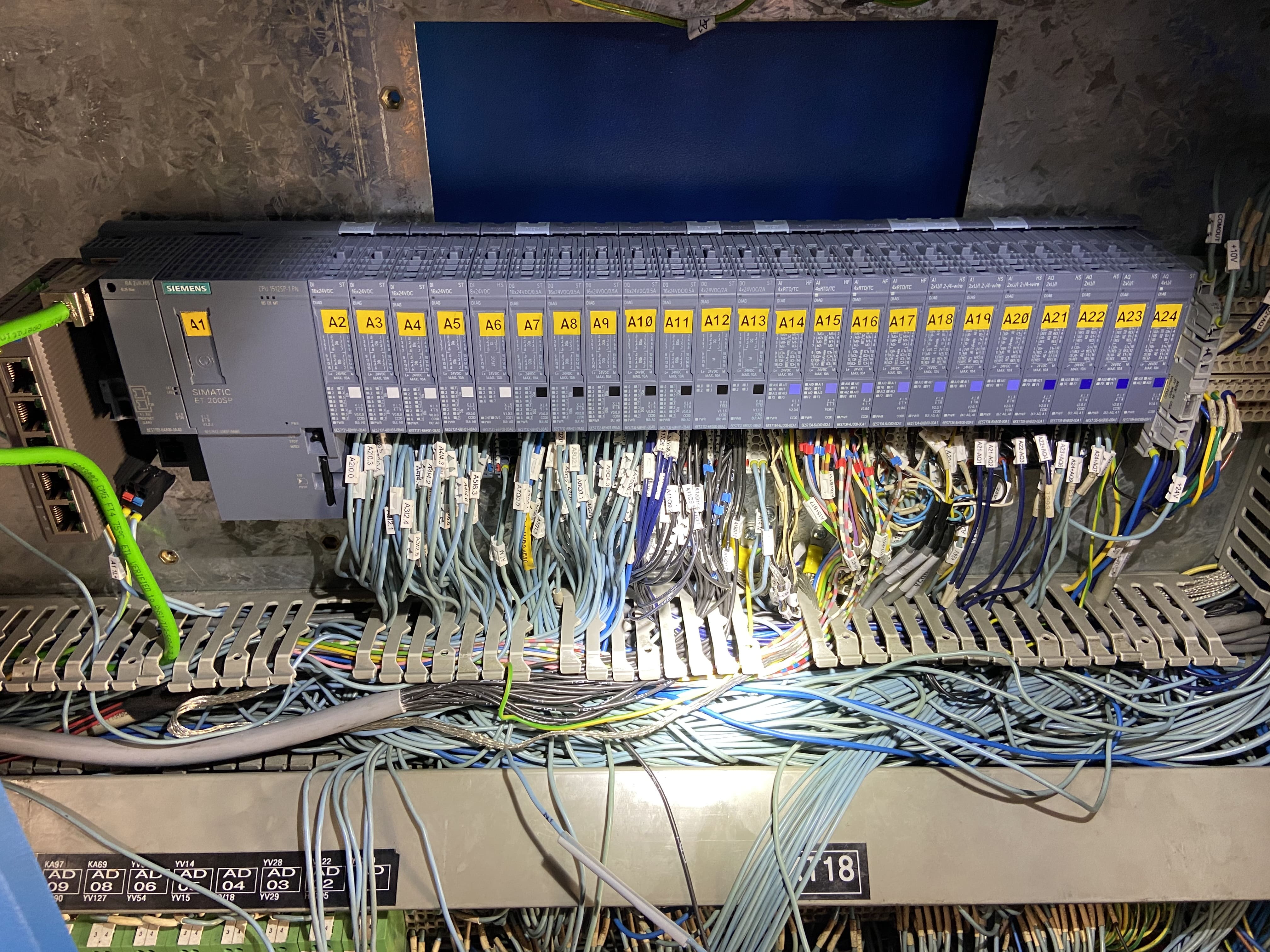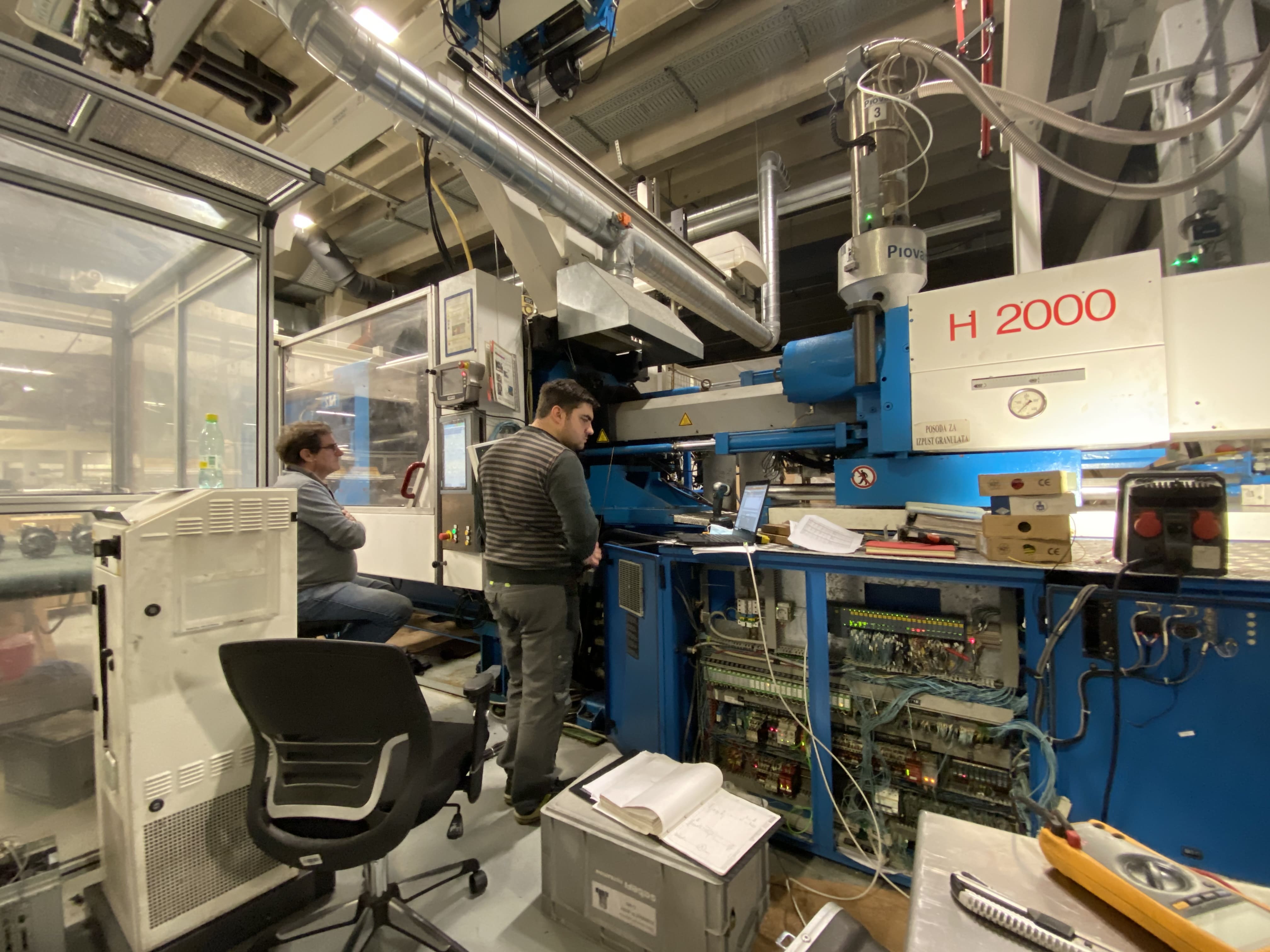 Works included complete removal of old computer control and software and installation of new modern SIEMENS control system and software including new touch screen HMI, hydraulics upgrade, mouting of new sensors for hydraulic pressure, implementation of EUROMAP67 interface for coordination with external robot, installation of new hot runner for mould temperature regulation and rework of electrical wires in the main electrical cabinet. As an addition we integrated Wittmann water temperature regulators into the system via the serial RS485 protocol.